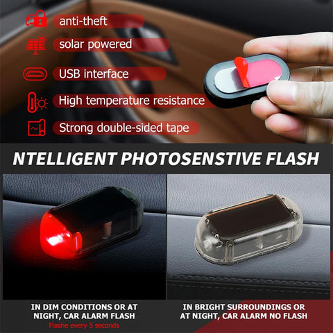 2024 Auto Attrappe Sicherheitslicht, solarbetrieben, simuliertes Dummy-Alarm, drahtlose Warnung, Diebstahlschutzlampe, LED-Blinklicht Nachahmung.
