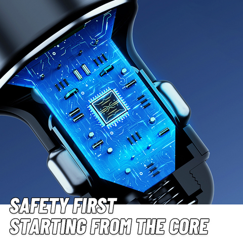Bleiben Sie auch beim Schnellladen cool! Unser Autoladegerät verfügt über zwei USB-Hochstromausgänge, um Ihre Geräte schnell aufzuladen, ohne übermäßige Hitze zu erzeugen. Genießen Sie schnelles Aufladen ohne Kompromisse bei der Sicherheit.