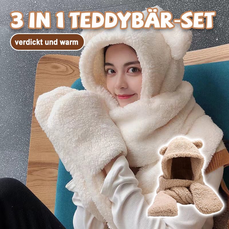 - 3 in 1 Plüsch-Teddybär-Set: Mütze, Schal und Handschuhe × 1